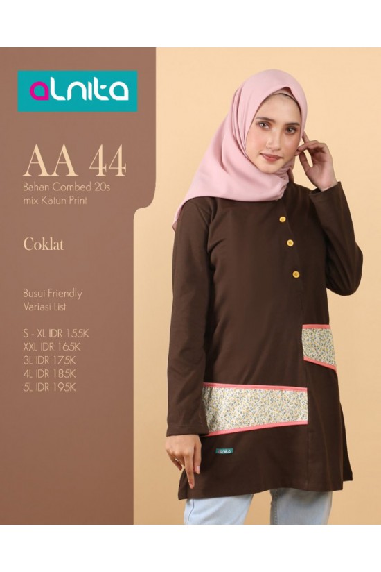 Di musim panas seperti ini , kita juga harus menyiapkan berbagai produk yang mendorong semangat kita untuk rutin olahrga. Contohnya memakai pakaian yang nyaman , meresap keringat saat dipakai olahraga. Dan sekarang tidak usah khawatir ya sahabat , karena Alnita memberi solusinya , AA 044 ini salah satunya . Baju atasan yang berbahan Combed 20s Mix Katun Print