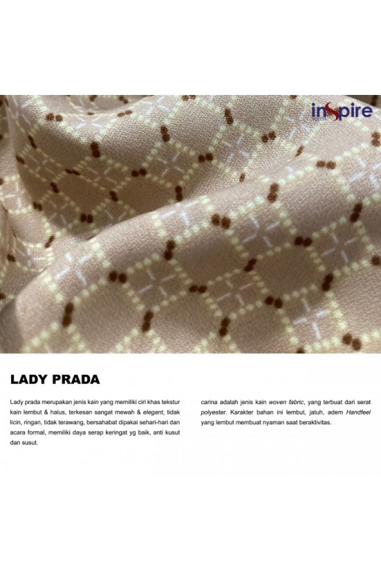 Material : Lady Prada mix Carina, tekstur kain lembut dan halus, terkesan mewah dan elegan, tidak licin, ringan, tidak menerawang, bersahabat dipakai sehari-hari maupun acara formal, memiliki daya serap keringat yang baik, dan anti kusut.