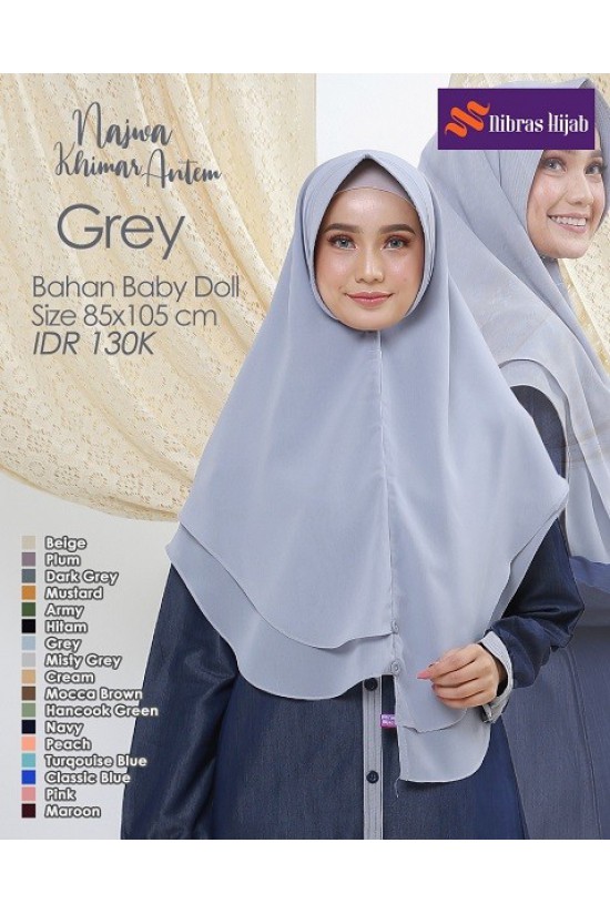 Najwa Khimar Antem, hijab cantik dan trendy dari Nibras. Hijab syar'i dengan bahan Baby Doll. Jenis kain yang memiliki tekstur seperti kulit jeruk atau berpasir. Turunan dari kain sifon sehingga karakteristik ceruti hampir sama dengan sifon. Namun, jika dibandingkan dengan kain ceruti ini lebih lembut dan lebih elastis.