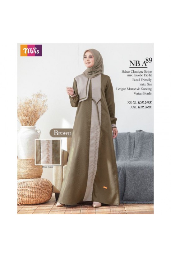 Banyak yang ngeluh kenapa gamis branded itu harganya selangit. Ya iyalah, wajar produk branded nggak mungkin banget pakai bahan pakaian yang murahan. Nah, kalau kalian lagi nyari gamis syar'i branded tapi yang harganya ramah dikantong, kalian wajib banget kepoin Gamis NB A89 ini. Dijamin gak bikin kecewa deh. Harganya cuma Rp. 248.00 dan khusus size XXL Rp. 260.000.