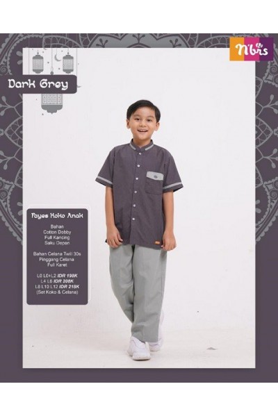 Salah satunya adalah baju koko anak yang diproduksi oleh Nibras yaitu Fayes Koko Anak. Terbuat dari Bahan Dobby Cotton, masih masuk kategori Woven Fabric dengan teknik tenun benang Dobby dikombinasikan dengan benang Cotton. Karakteristik kain ini bertekstur, ketebalannya medium, menyerap keringat dengan baik, sehingga nyaman digunakan pada iklim tropis. Material jenis ini biasanya cocok digunakan untuk busana casual yang mengedepankan kenyamanan.